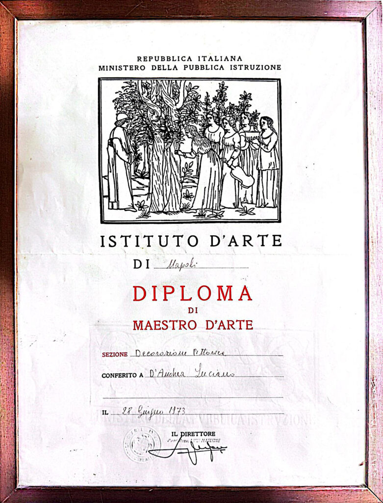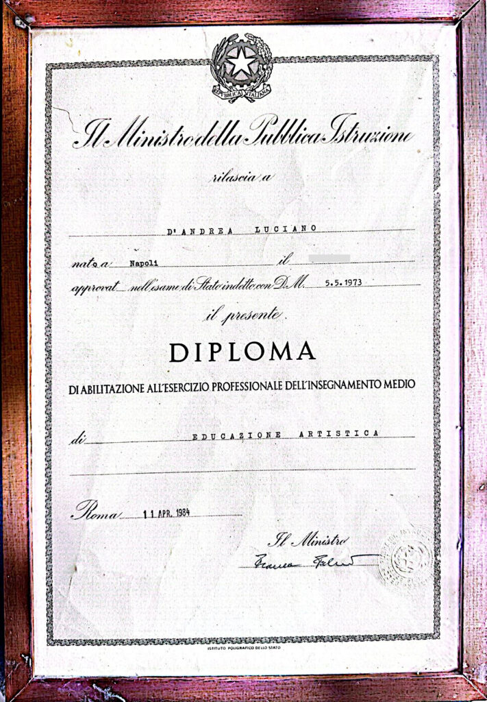 Maestro d’Arte diplomato presso l’Istituto d’Arte di Napoli ora Filippo Palizzi