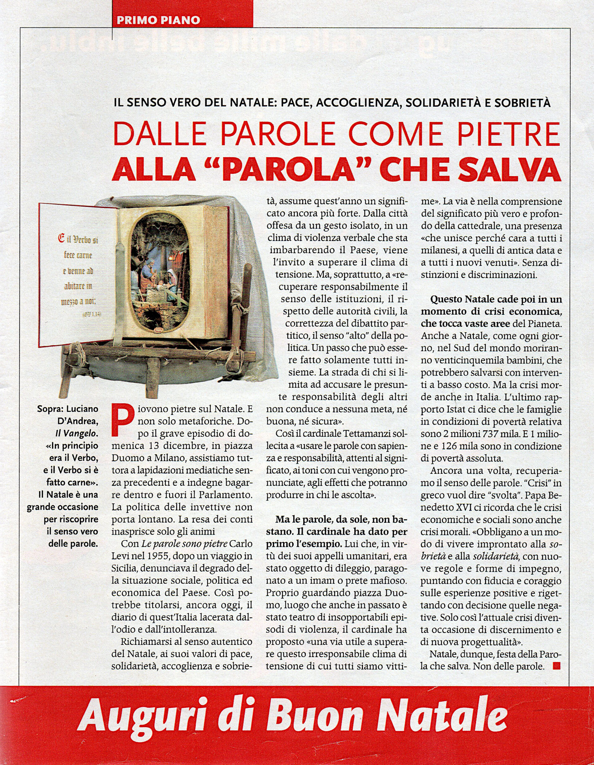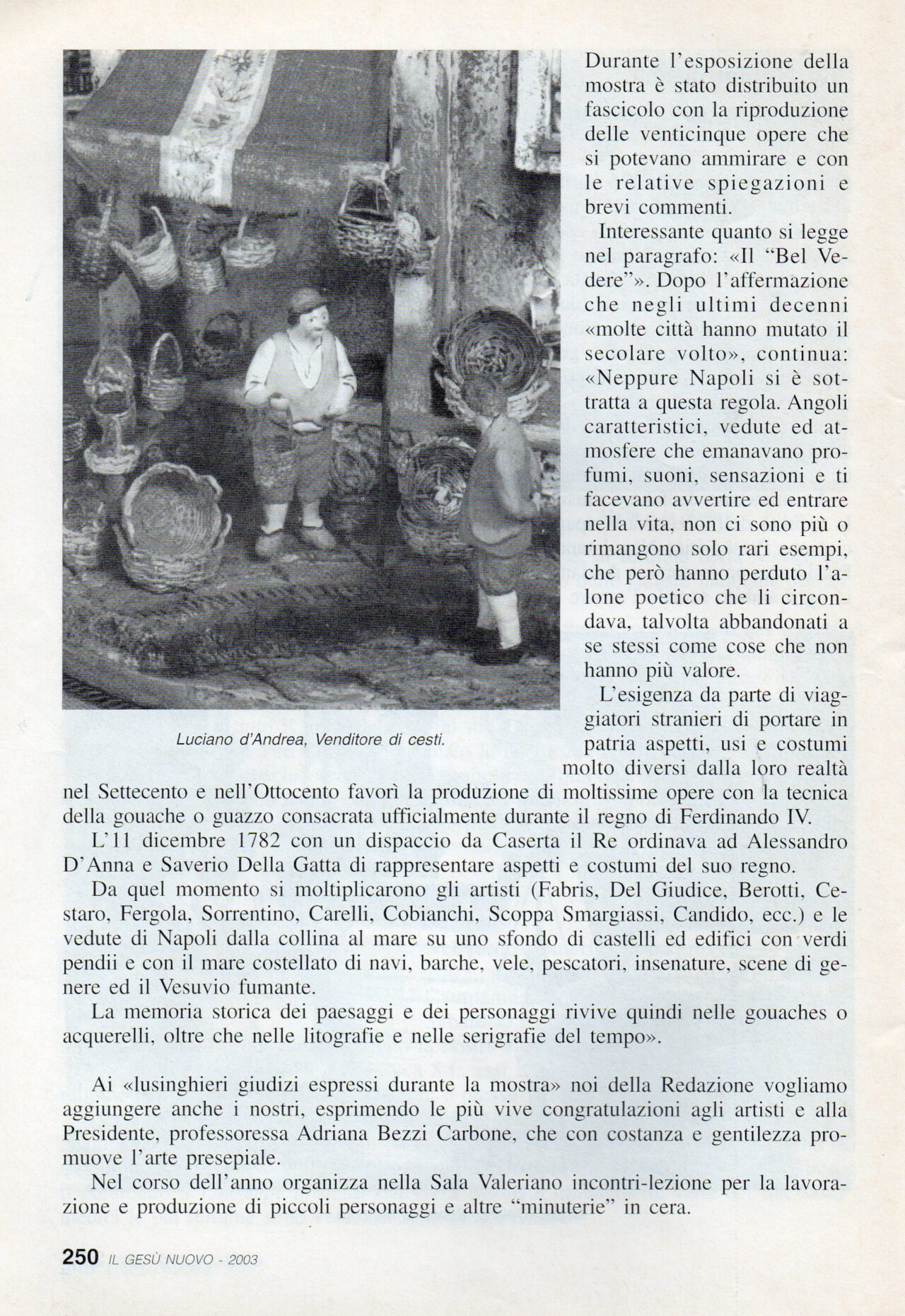 Amante della natura, della vita campestre, osserva con occhio attento e nostalgico l’architettura delle borgate, delle case di campagna così asimmetriche, così piene di fascino e capaci di suscitare suggestioni rievocatrici anche quando appaiono come soffocate e nello stesso tempo evidenziate dalle moderne strutture in cemento funzionali ma impersonali e disumanizzanti. Il suo presepe, dunque, è ambientato nel mondo contadino e montanaro della gente umile e sana che egli interpreta con fantasia e cuore…”